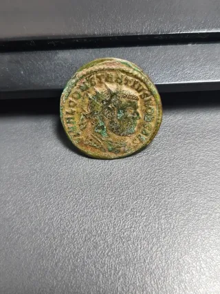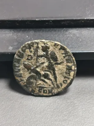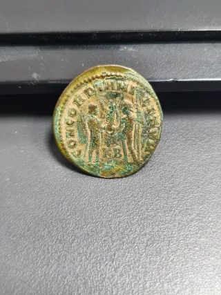 Moneda antigua con la efigie de Constancio I. - Diseño radiado. - Material de bronce.