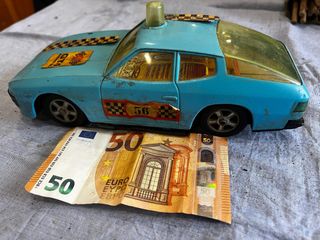 Coche de juguete vintage, modelo Porsche GT 1, de color azul. - Diseño clásico. - Detalles de carreras. - Ideal para coleccionistas.