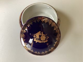 Elegante caja joyero de porcelana Limoges, con un diseño clásico y refinado. - Porcelana Limoges, con sello. Azul y decoración dorada. - Pieza de colección o un regalo elegante. - En perfectas condiciones. - Medidas: 12 cm diámetro. 4 cm altura. MÁS ARTICULOS EN MI PERFIL