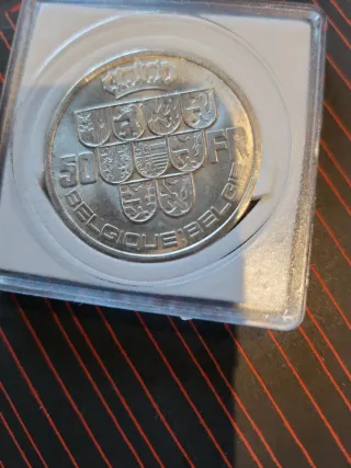 Moneda de 50 francos de plata belgas del año 1939. - Diseño con perfil. - Año de acuñación: 1939.