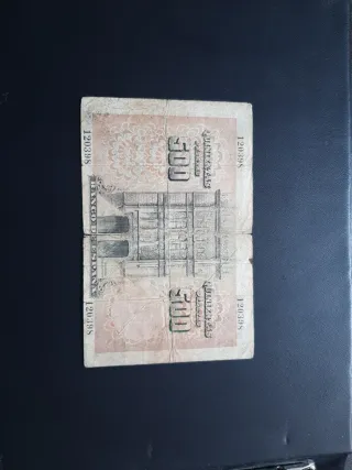 Billete de España circulado de 500 pesetas de 1979 con serie 1D. Posibilidad de envío ordinario bajo responsabilidad del comprador. Crea tu lote o anuncio con los billetes que quieras. VENDIDO A MONEDAS Y BILLETES.