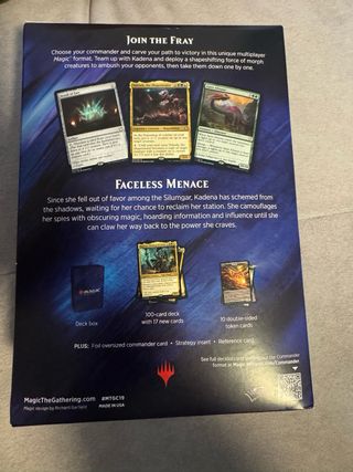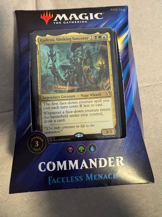Baraja de Commander de Magic: The Gathering, Faceless Menace. - Incluye la carta Kadena, Slinking Sorcerer como comandante. - Contiene 3 cartas foil. - Diseñada para el formato Commander.