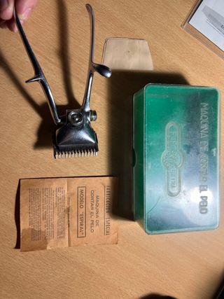 Máquina manual antigua para cortar el pelo, modelo Espiral. Fabricación especial. Maquinilla de cortar el pelo antigua – pieza de coleccionista Conserva sus elementos originales y el mecanismo funciona correctamente. Presenta signos normales del paso del tiempo, acordes a su antigüedad, - Incluye su caja original. - Incluye instrucciones de uso.