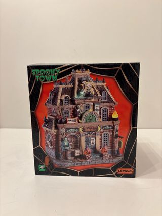 Figura decorativa de la colección Spooky Town de Lemax. Representa una casa embrujada con detalles temáticos de Halloween. - Diseño de casa embrujada. - Incluye elementos como calabazas y huesos. - Parte de la colección Spooky Town.