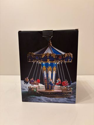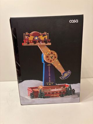 Figura decorativa Shooting Star de la marca Casa. Representa una atracción de feria con luces. - Base con efecto nieve. - Árboles decorativos. - Nombre de la atracción Star Voyager en la base.