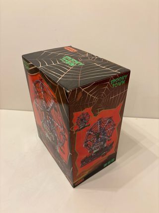 Figura de la noria Web of Terror de Lemax Spooky Town. Perfecta para decoraciones de Halloween. - Diseño detallado con temática de arañas y terror. - Incluye luces. - Funciona con 4.5V.