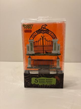 Set de accesorios de Halloween de Lemax Spooky Town. Incluye una puerta de entrada y vallas. - Diseño temático de Halloween. - Ideal para decoraciones. - Marca: Lemax Spooky Town.
