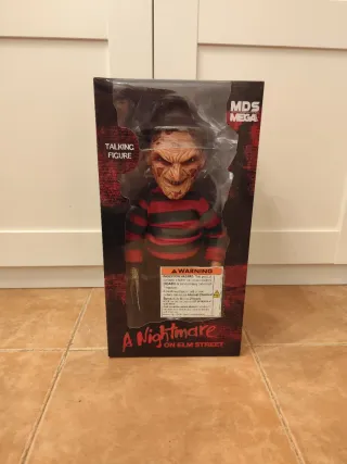 Figura de acción parlante de Freddy Krueger de A Nightmare on Elm Street de Mezco Toyz. - Figura de la línea MDS Mega. - Incluye advertencia de peligro de ingestión por batería.