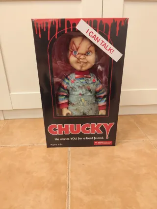 Figura coleccionable del personaje Chucky, con la frase I Can Talk! De Mezco Toyz. - Figura de Chucky. - Caja original. - Incluye texto I CAN TALK!. - Edad recomendada: 15+.