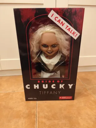 Figura de la película Novia de Chucky, personaje Tiffany. La figura I Can Talk! tiene pelo rubio y viste un atuendo característico de Mezco Toyz. - Figura de colección. - Edición I Can Talk!. - Personaje: Tiffany. - Edad recomendada: 15+.