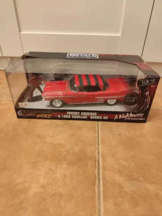 Figura de colección de Freddy Krueger con su icónico Cadillac de 1958. - Coche Metals Die-Cast de la serie Hollywood Rides. - Incluye figura de Freddy Krueger. - Modelo: 1958 Cadillac Series 62. - Temática: A Nightmare on Elm Street.