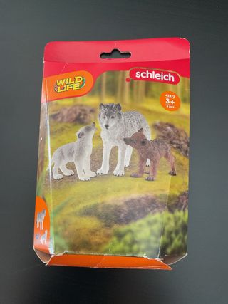Solo envios Figura de la marca Schleich de una loba con sus cachorros, modelo 42472. - Colección Wild Life. - Incluye 3 piezas.