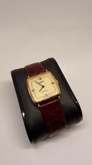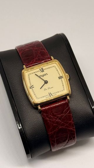 Elegante reloj Nyon de cuerda manual en estado NOS (New Old Stock). - Esfera color crema con números romanos. - Correa de piel burdeos. - Fabricado en Suiza. - No tiene caja ni papeles. Mi muñeca es de 17,50 cm de perímetro.