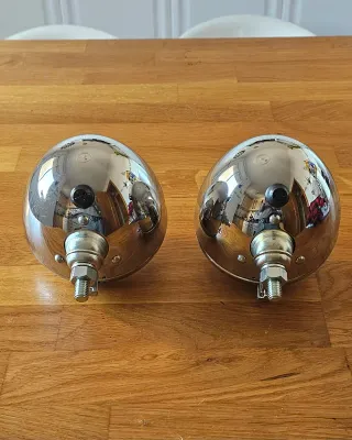 PRECIOSOS FAROS ORIGINALES HELLA de larga distancia fabricados en Alemania Ideales para restauración de coches clasicos para MINI PORCHE VW BMW Producto descatalogado muy dificil de encontrar i mas a precios razonables. Uno de los faros tiene una ligera marca en la parte lateral inferior apenas visible por el gran brillo de la carcasa cromada