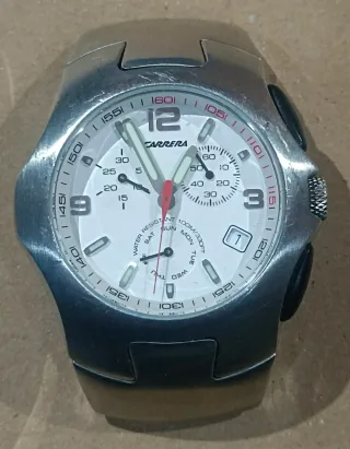 El reloj funciona parcialmente. Es reparable. No acepto devoluciones. Para piezas, reparar o completar con otro reloj. Caja de reloj Carrera modelo 49601, sin brazalete. Ideal para repuestos o para completar un reloj. - Caja de acero inoxidable. - Resistencia al agua 100M. - Cristal. - Grabado CARRERA en la tapa.
