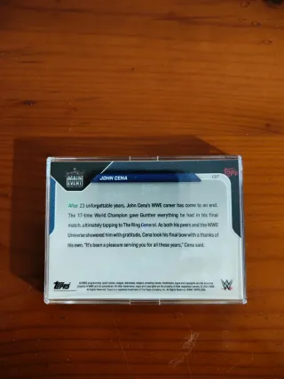 Carta coleccionable de John Cena de la edición Main Event de Topps. - Edición limitada. - Año: 2025. - Fecha: 12.13. - The Last Real Champion bids farewell to WWE.