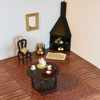 Conjunto de muebles en miniatura a escala 1:12, perfecto para casas de muñecas o coleccionistas. - Incluye mesa, silla, chimenea, leñera, espejo, alfombra y servicio de té. - Diseño detallado con cojines florales. - Ideal para crear escenas realistas. Incluye todo lo que se ve en la fotografia