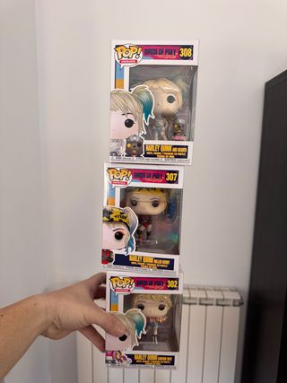 Lote de tres figuras Funko Pop de Harley Quinn de la película Birds of Prey. - Funko Pop 308 Harley Quinn and Beaver - Funko Pop 307 Harley Quinn Roller Derby - Funko Pop 302 Harley Quinn Caution Tape Hi Escucho Ofertas por Todos
