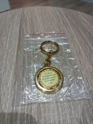 Precioso llavero medalla dorado con la imagen de la Virgen María por delante y por detrás el escrito "Oh María sin pecado concebida rogad por nosotros que recurrimos a ti". Se encuentra en estado nuevo sin uso. Ideal para regalar. La Milagrosa