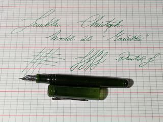 Pluma estilográfica Franklin-Christoph, modelo 20 "Marietta" Punto F Carga por cartucho o convertidor -incluido- En perfecto estado.El capuchón sin rosca hace que tenga un agarre muy cómodo.