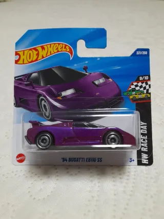 Coche de juguete Hot Wheels, modelo '94 Bugatti EB110 SS. - Color morado metálico. - Parte de la colección HW Race Day. - Escala 1:64.