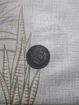Moneda de cinco pesetas con el escudo de España. - Diseño detallado del escudo. - Borde con acabado granulado.
