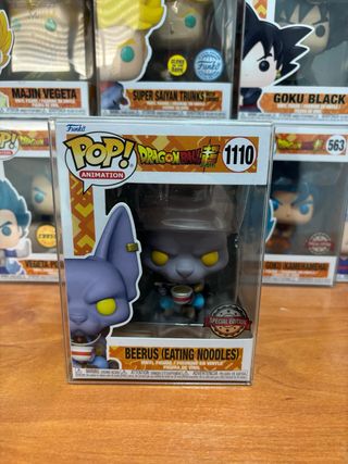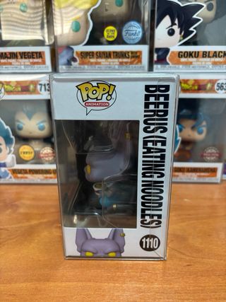 Figura Funko Pop de Beerus, personaje de Dragon Ball Super, en la pose de comer fideos. Es una edición especial. - Número de figura: 1110. - Serie: Dragon Ball Super. - Tipo: Figura de vinilo.