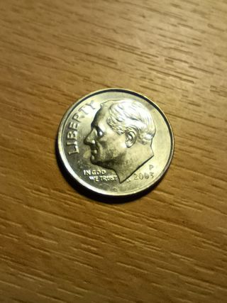 Moneda de 10 centavos de Estados Unidos, año 2003. - Ceca: Filadelfia (P). - Diseño de Franklin D. Roosevelt.