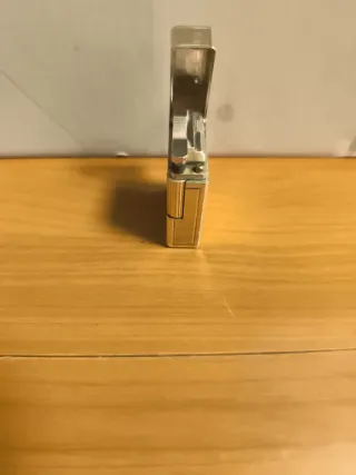 Elegante encendedor de la marca Dupont, un accesorio clásico y sofisticado. - Diseño metálico. - Acabado dorado.