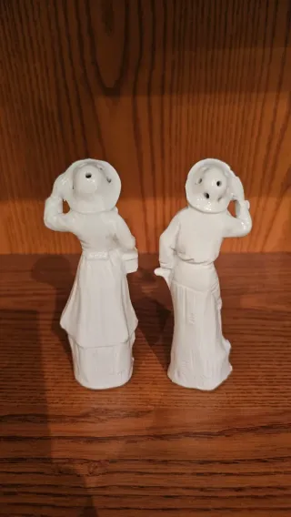 Conjunto de dos figuritas vintage, ideales para usar como salero y pimentero. - Diseño clásico. - Material de porcelana blanca.
