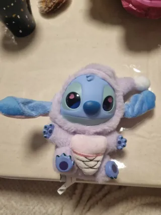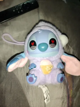 Adorable peluche de Stitch con un diseño tierno y suave. - Color azul y morado. - Detalles en rosa y blanco en el pecho. - Capucha con pompón.