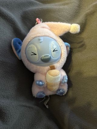 Figura de Labubu con diseño de Stitch, sosteniendo una piña. - Detalles en color azul y rosa. - Adorno de piña en la parte frontal. - Peluche suave.