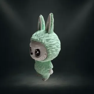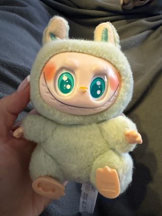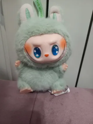 Peluche suave y adorable de Labubu en color verde. Solo puesto de exposición. - Diseño de conejo. - Material de felpa. - Ojos grandes y expresivos.