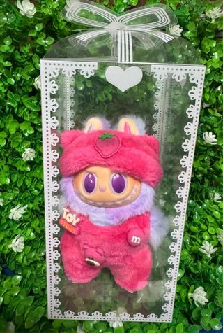 Adorable muñeco Labubu con un divertido diseño. - Peluche suave y colorido. - Detalles de fresa y orejas de conejo. - Incluye un pequeño detalle de M&M's.