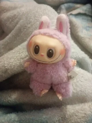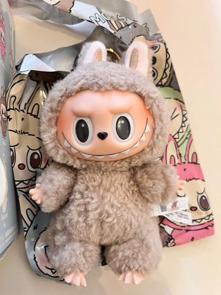 Figura de peluche del personaje Labubu. Nuevo cada uno 15€ No 0riginal - Diseño de personaje con capucha y orejas. - Textura suave y peluda. - Detalles faciales coloridos.