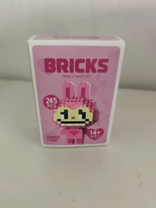 Set de construcción de bloques tipo BRICKS con un diseño de personaje de labubu rosa. - Incluye 245 piezas. - Recomendado para mayores de 14 años. - Modelo DMXС E3059.