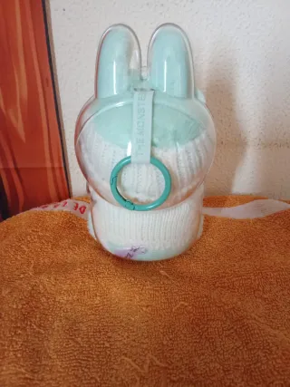 Adorable peluche de Labubu con temática Bratz, perfecto como llavero. - Diseño tierno en color rosa. - Detalles de osito en la capucha. - Cadena plateada con colgante de biberón. (Se vende porque no es la que quiero)