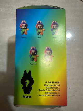 Caja sorpresa de la marca Pop Mart con el personaje Labubu. - Diseño colorido y vibrante. - Incluye figura de Labubu.
