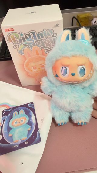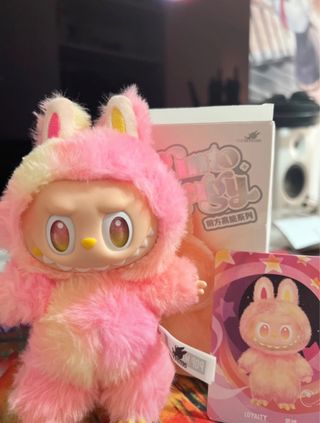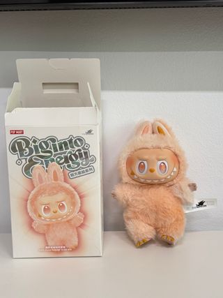 Peluche de la marca PopMart. - Peluche suave y esponjoso. - Orejas y detalles en color claro. - Incluye tarjeta coleccionable.