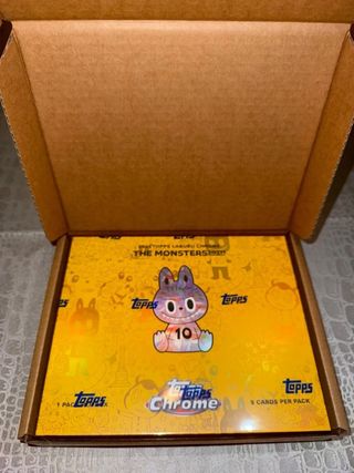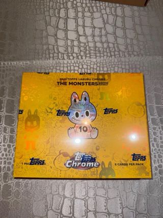 Caja de cromos Topps Labubu Chrome celebrando el 10º aniversario. - Contiene 1 paquete. - Cada paquete incluye 5 cromos. - Diseño especial The Monsters.