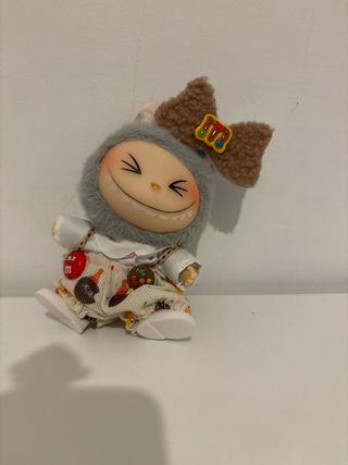 Figura coleccionable Labubu en color gris. - Diseño personalizado. - Detalles en tela y plástico.
