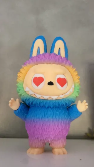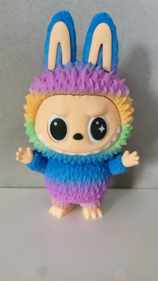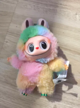 Figura coleccionable Labubu con un diseño multicolor. - Peluche suave y esponjoso. - Colores del arcoíris. Nuevo. Solo sacado del envoltorio NO original