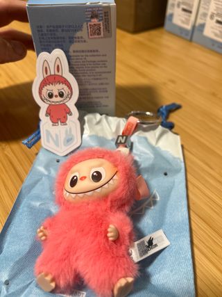 Modelo letra Q de la colección labubu pin for love. solo abierto para poder seleccionar el color deseado por el comprador. original de tienda PopMart Barcelona( se incluye ticket de compra en las fotos) QR en caja para comprobar originalidad. Adorable peluche de Labubu en color rosa, perfecto para coleccionar. - Diseño de personaje con capucha de conejito. - Material suave y peludo. - Incluye llavero.