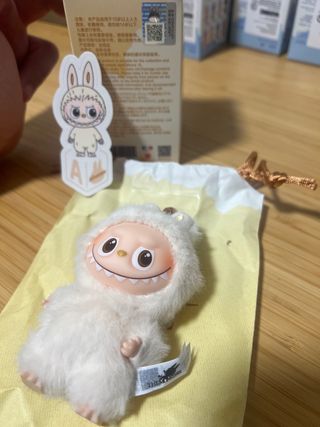 Modelo letra I de la colección labubu pin for love. solo abierto para poder seleccionar el color deseado por el comprador. original de tienda PopMart Barcelona( se incluye ticket de compra en las fotos) QR en caja para comprobar originalidad. Adorable peluche de Labubu, perfecto para coleccionar. - Diseño de personaje con orejas de conejo. - Textura suave y peluda. - Color azul claro.