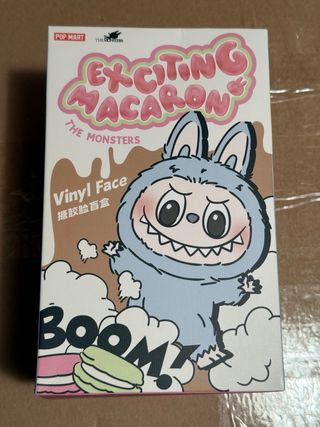 Caja sorpresa de la colección Exciting Macaron de Pop Mart. - Diseño de The Monsters. - Personaje Vinyl Face con temática de macaron. - Incluye un macaron de juguete.