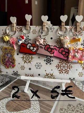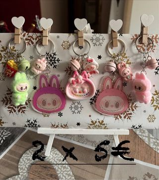 Llaveros hechos a mano con diversos diseños. - Llaveros con figuras de Hello Kitty. - Llavero con personaje de Sailor Moon. - Llaveros con figuras de Labubu