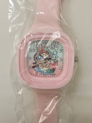 Reloj color rosa con diseño del personaje Labubu en la esfera. Mide 25 cm de largo. Está totalmente nuevo sin uso y a estrenar. Ideal para fans de los Labubu, para quien busque un accesorio original y colorido para su día a día o para regalo.