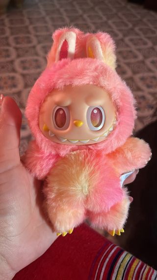Peluche de Labubu de la marca Pop Mart. Este adorable personaje tiene un diseño tierno y divertido. - Material suave y esponjoso. - Orejas de conejo. - Detalle de cinta con el logo MONSTER. - Envio no incluido. - No intercambio.