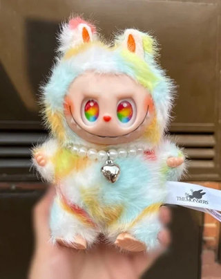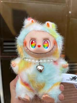 Se venden adorables peluche Labubu multicolor 5.0. Es un juguete único y encantador. Edicion Limitada. Tenemos varias en Stok. - Tiene un diseño multicolor con tonos pastel. - Incluye un bonito collar de perlas con dije. - Acabados de peluche suave y tierno.