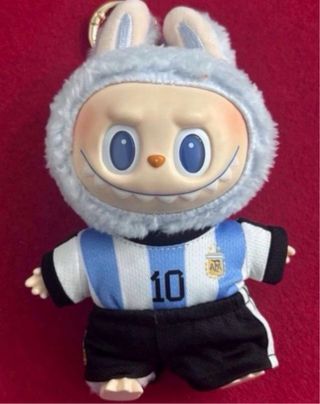 Adorable muñeco con un diseño inspirado en Labubu, vestido con la equipación de la selección argentina de fútbol. NO HAGI CAMBIOS NI RESERVAS PRECIO NO NEGOCIABLE NO CONTESTO OFERTAS SOLO ENVIOS NO ENTREGO EN MANO